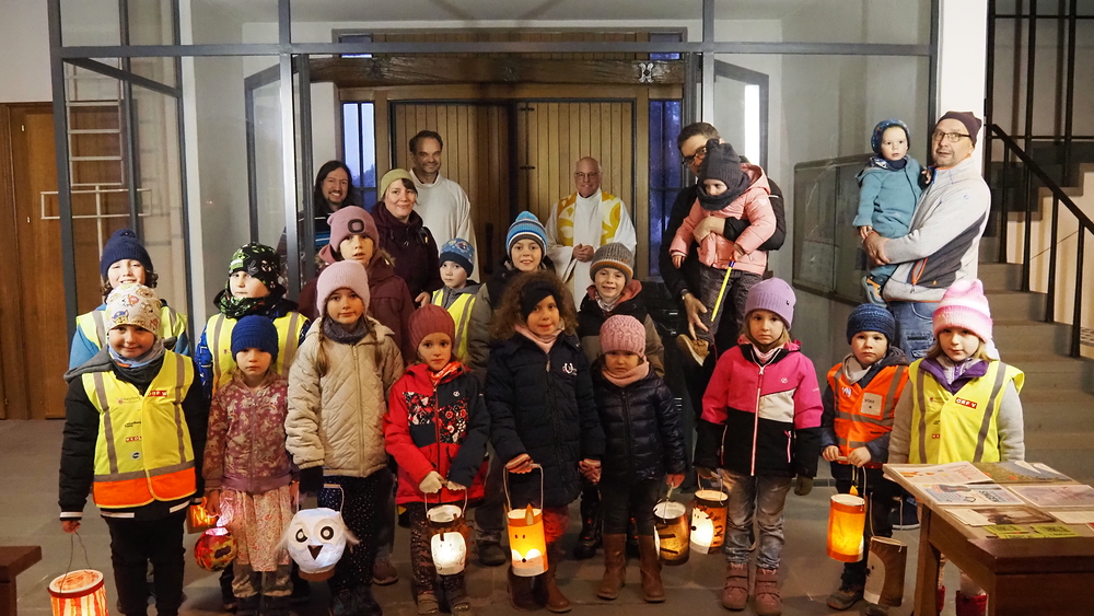 Beim diesjährigen Martinsfest am 8. November durften die Kinder mit ihren leuchtenden Laternen in die dunkle Kirche einziehen. Musikalisch begleitet von der Röthner Jungmusik feierten Vikar Willi und Gemeindeleiter Michael das Martinsfest.